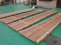 杉の一枚板が少し入荷しました。先月伐採したてなので、含水多く重いです。