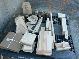 60年以上営業している灘銘木店には、切れ端や不良返品になったもの、または、なんだかわからないけど倉庫に眠っている木材がゴロゴロとございます。数年前よりお持ち帰りコーナーを会社入口に作って、少しずつ出品しておりますが いつも大好評で一晩で大方お持ち帰りいただいております。DIYでも焚き物にでもどうぞ!早い者勝ちです。